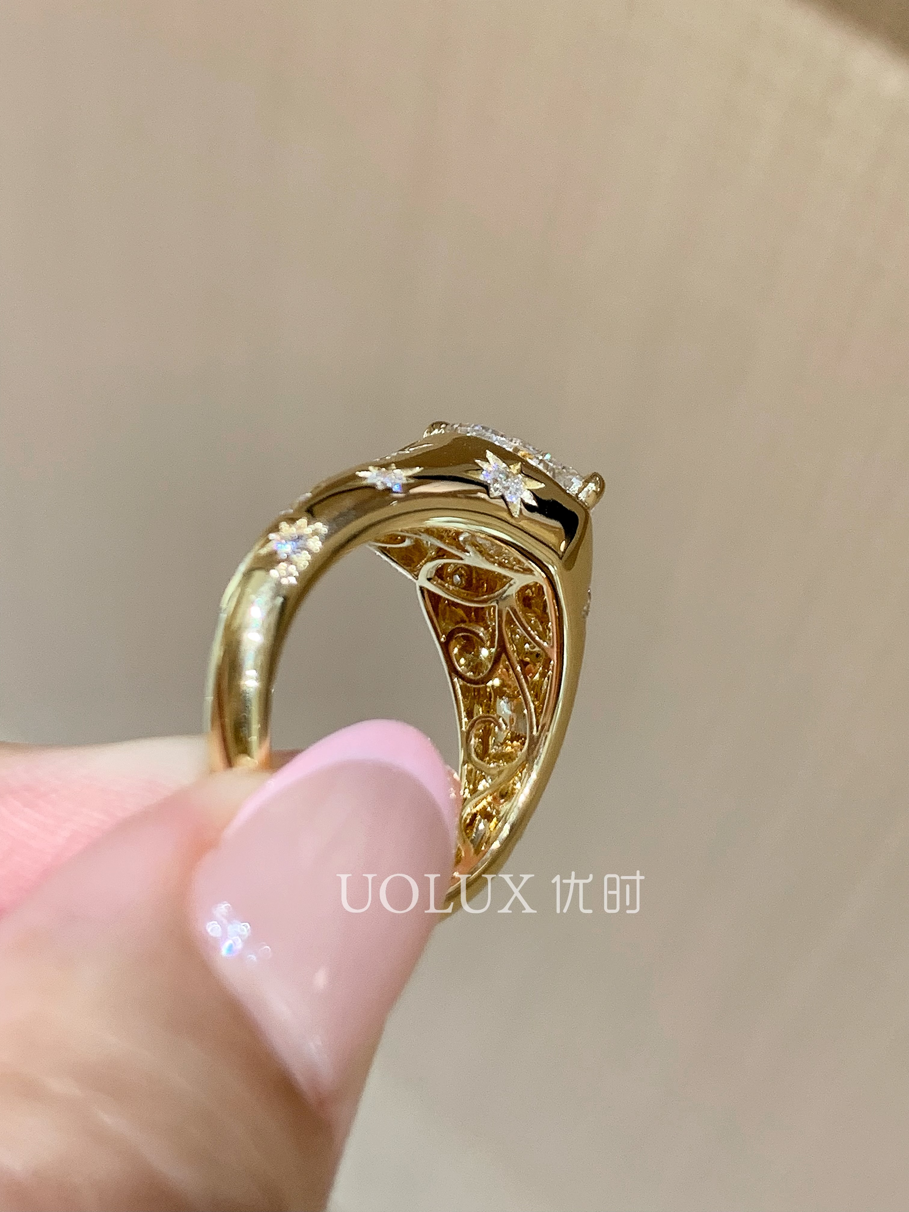 黄18k培育爱心宽版老钱风钻戒